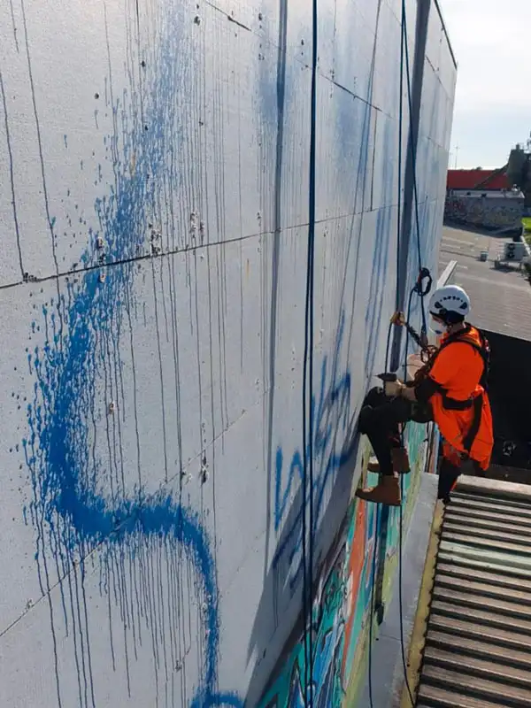 If you lack access, rather than opting for scaffolding, we can offer cost savings by installing anchor points and performing abseiling.